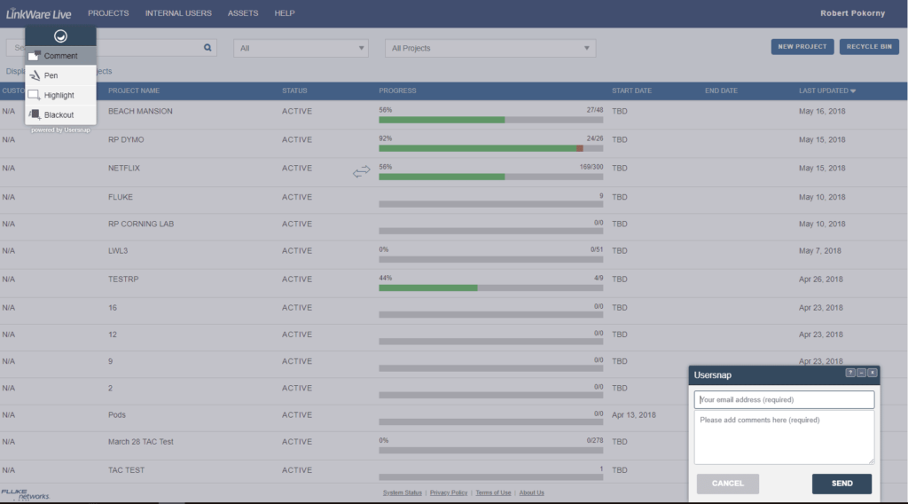 Inicie sesión en LinkWare Live y haga clic en el enlace Comentarios en la esquina inferior derecha de la interfaz de LinkWare Live.
