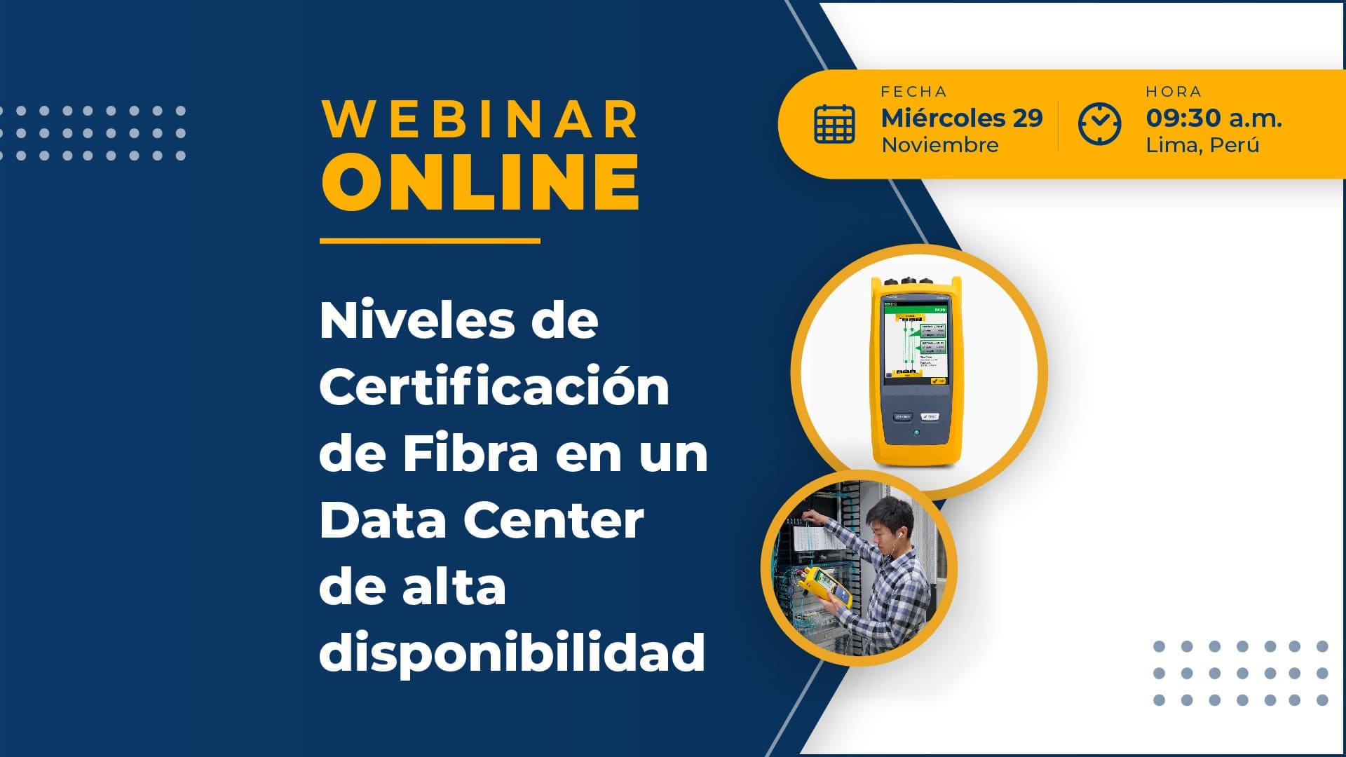 En este webinar expondremos las distintas pruebas que componen una certificación completa de fibra óptica en centro de datos con funciones de alta disponibilidad.